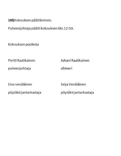 Kokouspöytäkirjoja