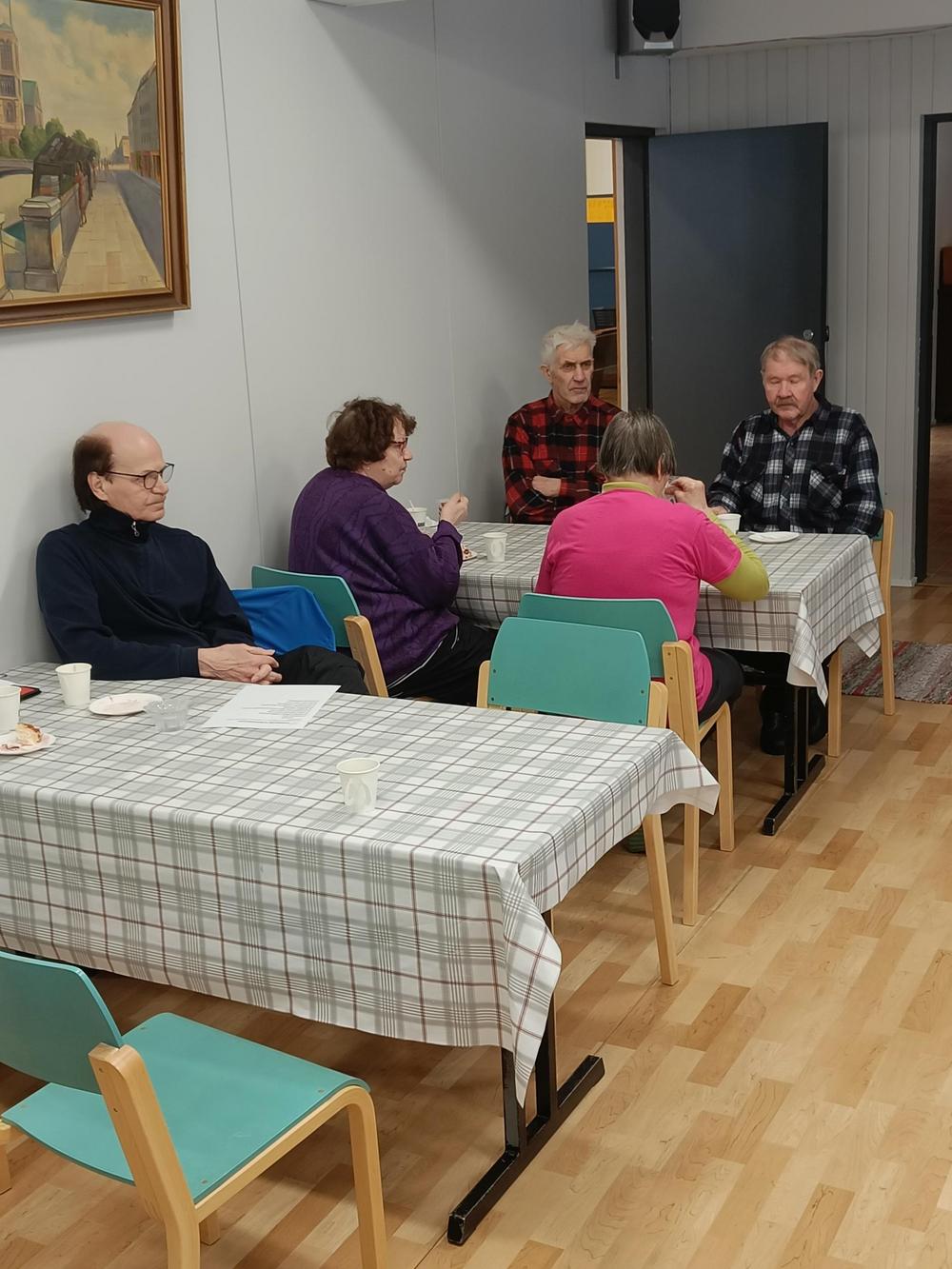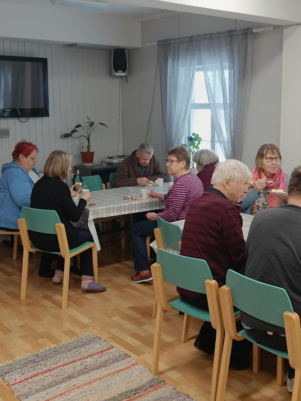 Paikkana oli Hammaslahden Nuorisoseurantalon kahvio. Kahvit ja kermakakku tekivät kauppansa.